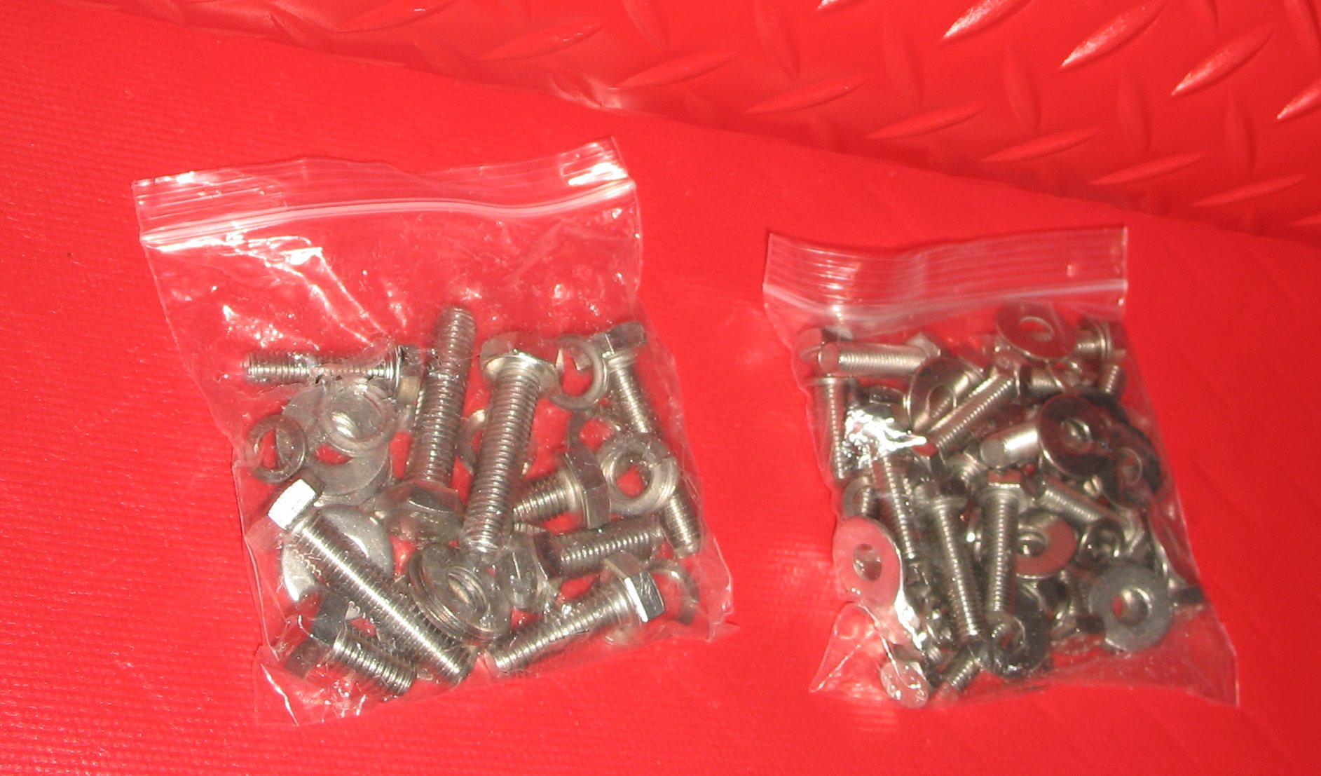 I wanted to upgrade the fasteners holding the chassis to the body, so I picked up a set from a gentleman on eBay (Member id: dcmotorsportuk). Some people sell these kits and include the rectangular mounting brackets, but I decided to keep my originals, and just clean them. The bolts could be cleaned too, I suppose, but some of the broke anyway when I was taking them out; I think the stainless will give me a longer-lasting, rust-resistant fastener.