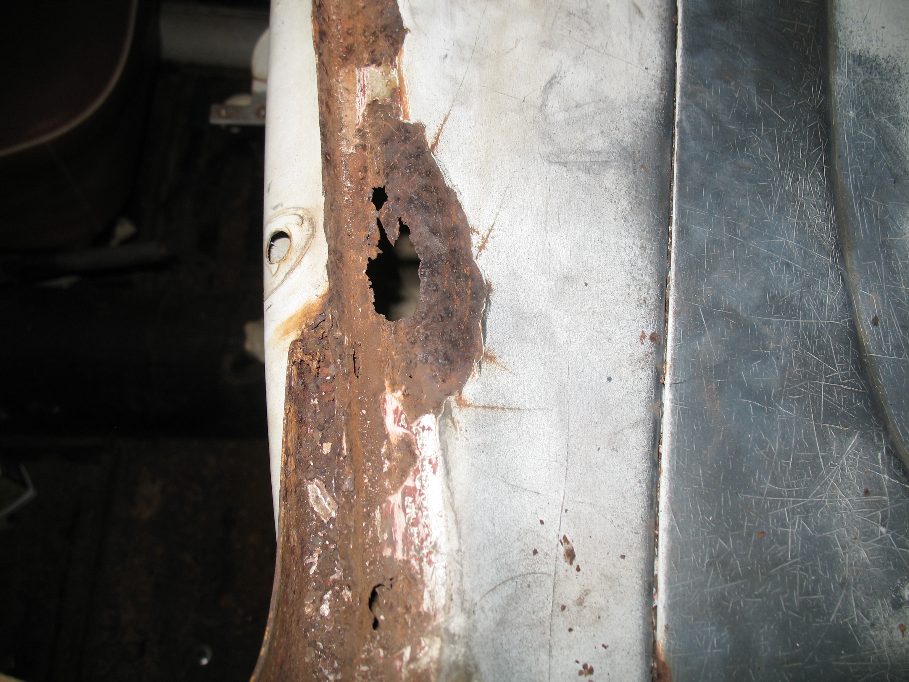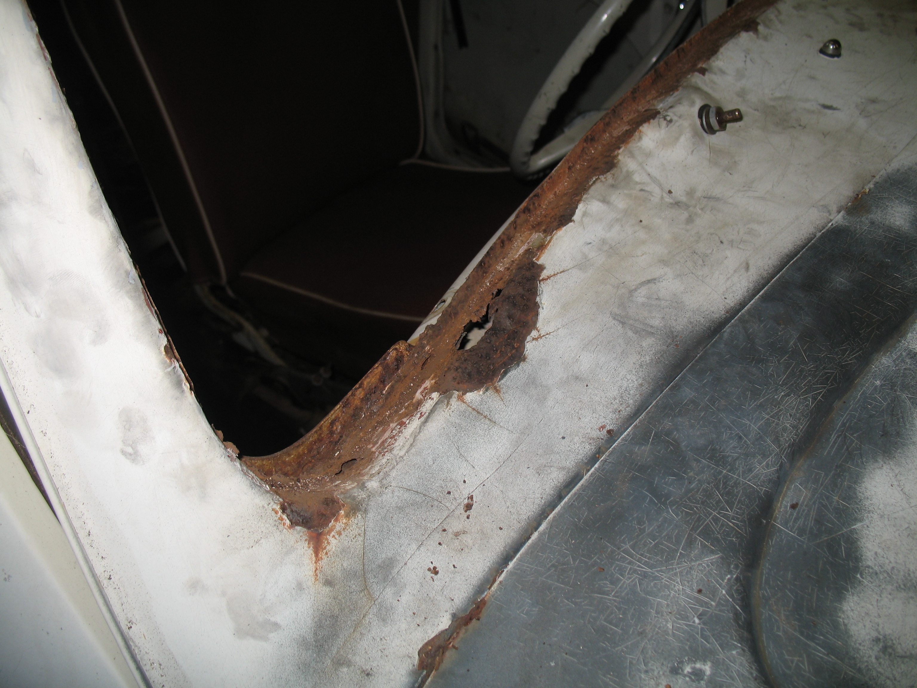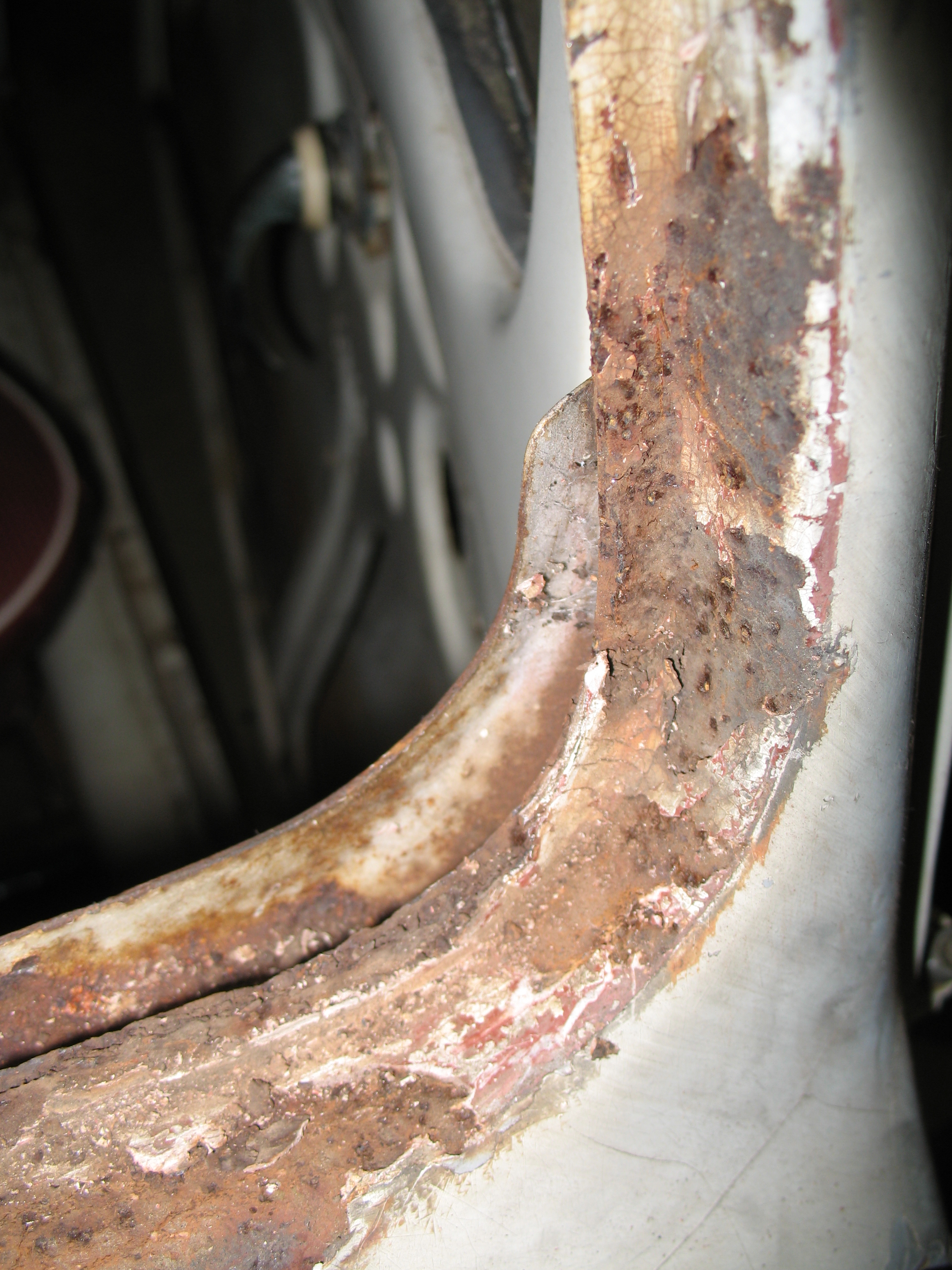 Underneath the windshield, I had been expecting some serious rust-damage and that’s exactly what I found. After looking it over, I think I will be able to repair it. There’s fairly-decent access from the top (obviously) and the bottom (through the hood.) I intend to weld-in some patch sections, then use some lead (lead-free) body solder to smooth it over. The worst section is where the window rim has been rusted away. Not sure how to build it back without putting in a section from a donor car, and that may be difficult to line up and size correctly. That will be challenging, I think.