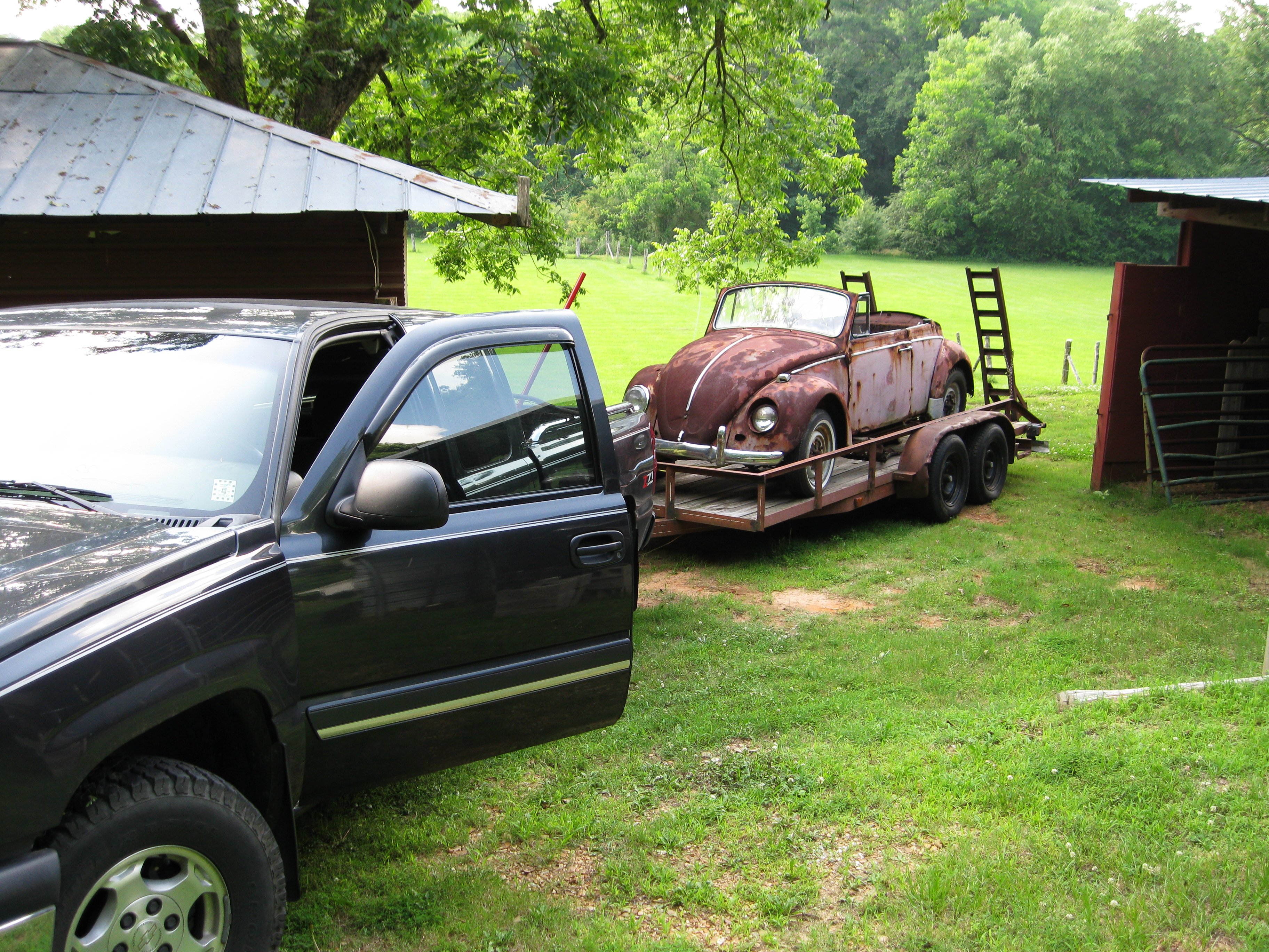 I finally got the weather and my schedule to cooperate, and I went back to Alabama to pick up the second of my bugs: a 1966 Convertible. In rough condition. There are some parts here and there to be salvaged (like a motor, maybe, and a transaxle) but most of this vehicle is lost, I’m afraid. I’m going to use it as a practice dummy, and test some repair skills on this one before I work on the ’63.
